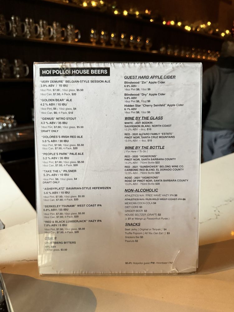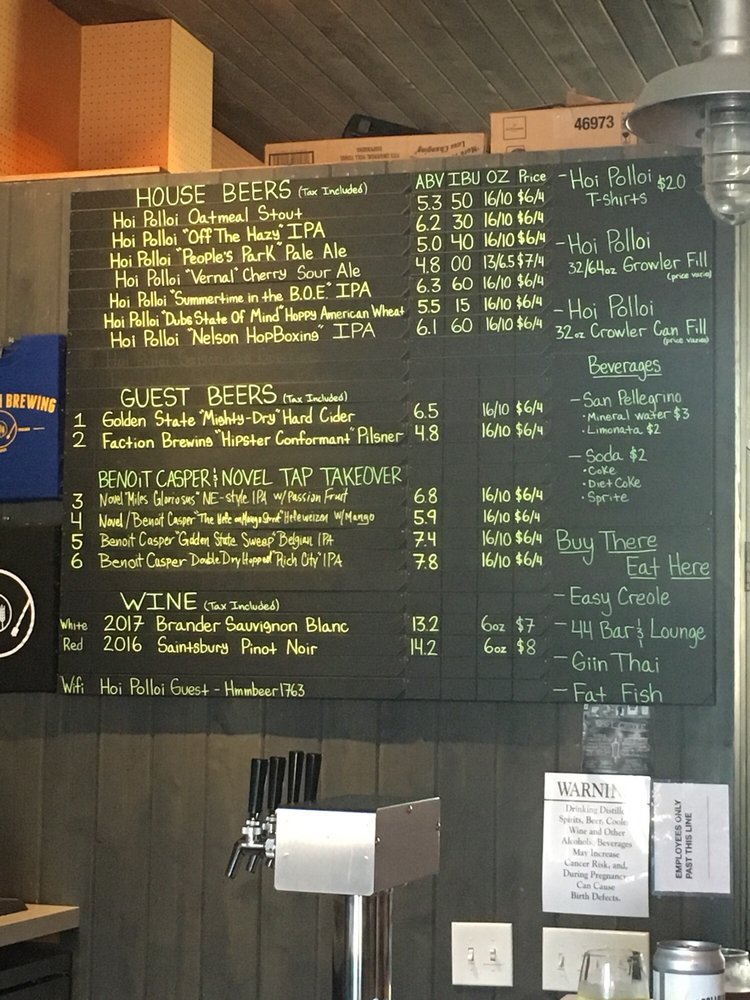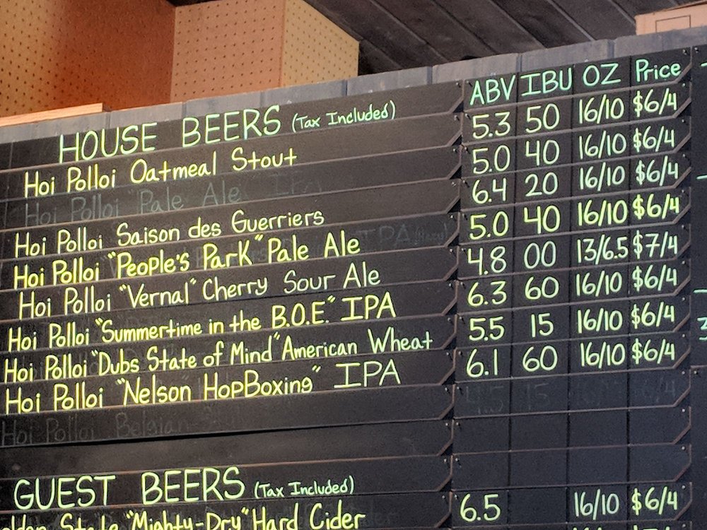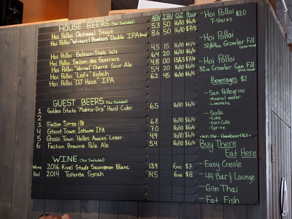 Hoi Polloi Brewing Taproom and Beat Lounge Menu